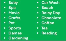 Donate an entire themed basket that you make either alone or with a group). Possible theme ideas are: