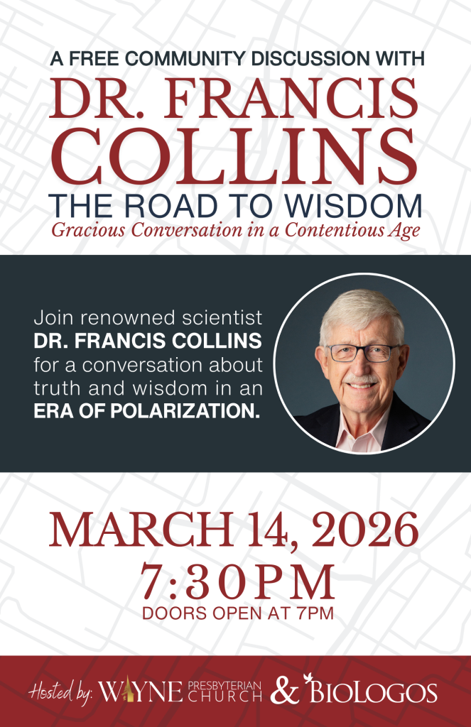 Dr. Francis Collins, former director of the NIH, is one of the world’s leading scientists and a thoughtful Christian believer. We’ll be studying his book, The Road to Wisdom, in our Sunday Adult Education class this spring. We have the rare chance to meet him on March 14 when he’ll be at Wayne Presbyterian Church.
